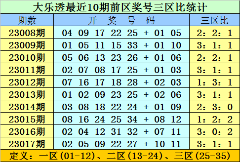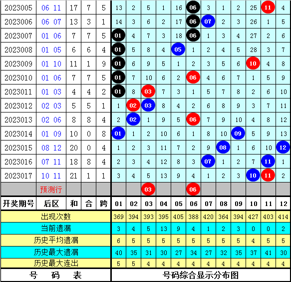 一区(01-12)分析:最近10期前区开出23个号码,号码奇偶比为12:11,基本抓平。本期该区号码参考:01 06。