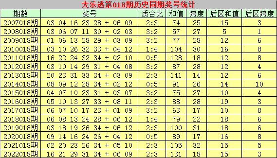 和值分析:历史同时第018期奖号前区和值分别开出:74、57、77、104、128、87、141、91、75、88、63、79、100、89、105、131,对比旧年第018期同时奖号,本期瞻望和值下落,随和70-80区段和值。