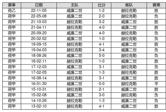 赫拉克勒 VS 威廉二世两队近10年的交战次数为18场,赫拉克勒9胜1平8负,赢球概率为50%,平局概率为5.6%,输球概率为44.4%。