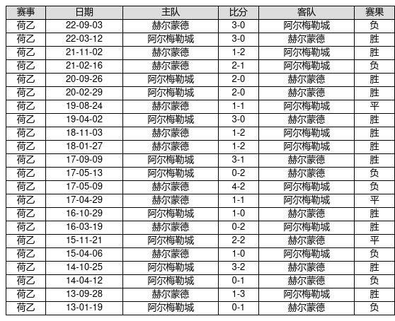 阿尔梅勒城 VS 赫尔蒙德两队近10年的交战次数为22场,阿尔梅勒城12胜3平7负,赢球概率为54.5%,平局概率为13.6%,输球概率为31.8%。