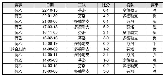 多德勒支 VS 芬洛两队近10年的交战次数为12场皇冠博彩网址,多德勒支6胜1平5负,赢球概率为50%,平局概率为8.3%,输球概率为41.7%。