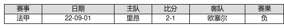欧塞尔 VS 里昂两队近10年的交战次数为1场,欧塞尔0胜0平1负,赢球概率为0%,平局概率为0%,输球概率为100%。