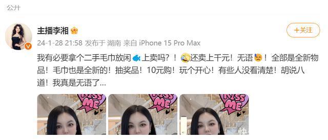 李湘示意“有必要拿个二手毛巾上卖吗?!还卖上千元!一谈是全新物品!毛巾亦然全新的!有些东谈主没看领略!瞎掰八谈!我果真难熬了…”